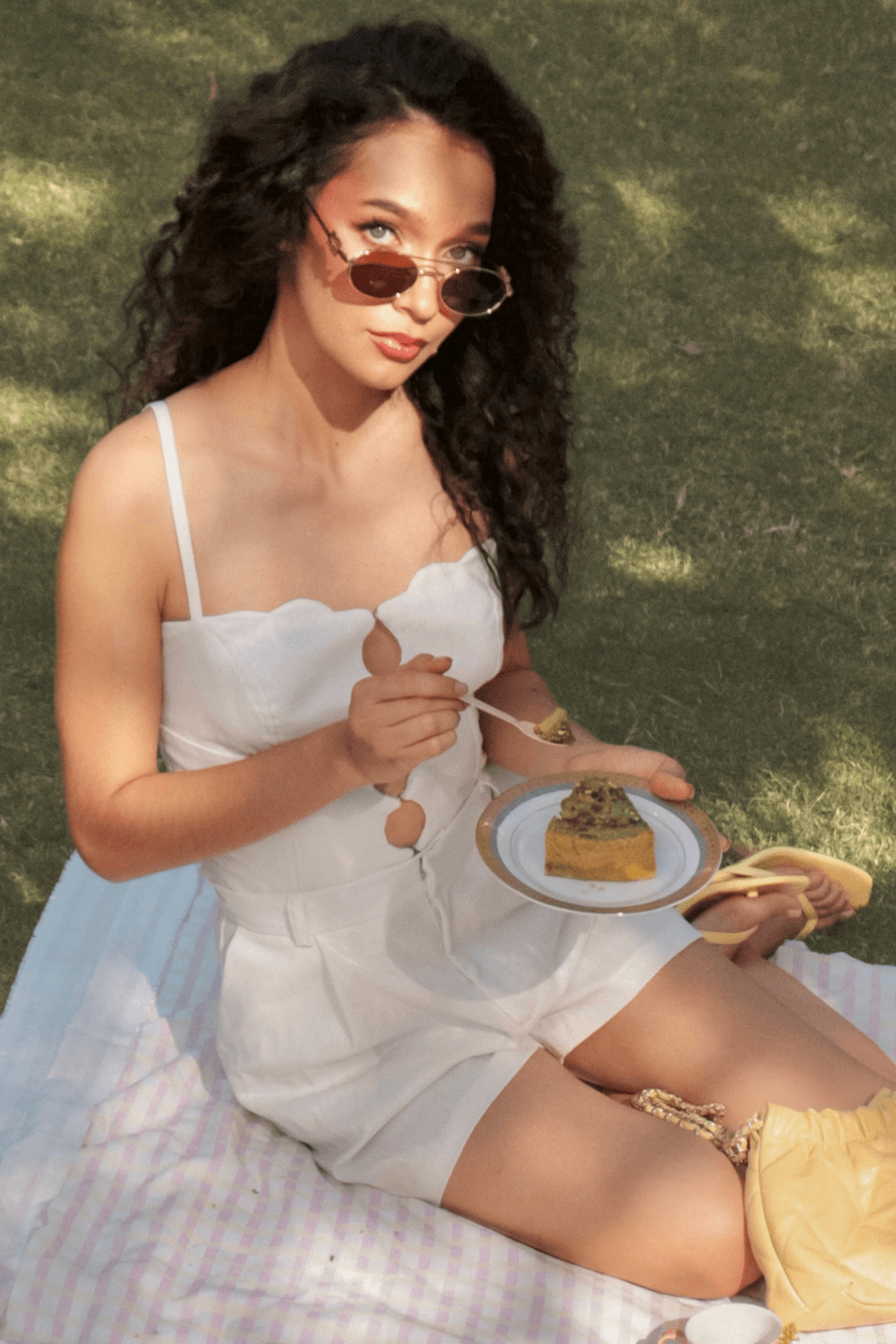 Esta bermuda tiene un diseño fluido con pinzas frontales que estilizan la figura y bolsillos laterales funcionales. Su tejido de lino con hilos de brillos refleja la luz con sutileza, haciendo de la prenda una opción elegante para eventos de día o de noche.